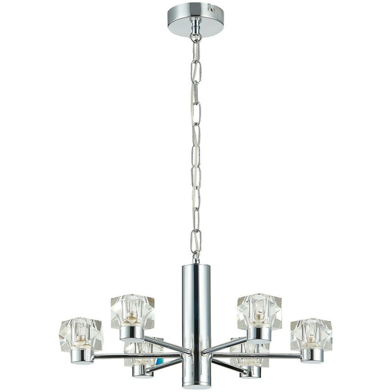 Spring Lighting Soffitto a sospensione multibraccio contemporaneo a 6 luci cromato, vetro | Finitura: Cromata | Materiale: metallo, vetro | Grado di protezione IP: IP20 | Altezza minima: 47 cm | Altezza massima: 127 cm | Diametro paralume: 7 cm | Altezza paralume: 5 cm | Tipo di lampada: G9 | N. di lampade: 6 | Lampadina inclusa: no | Dimmerabile: Sì - Necessaria una lampadina dimmerabile | Peso: 3,2 kg | Potenza (max): 40 W
