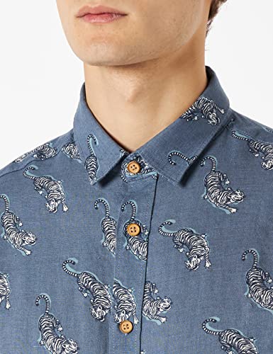 Springfield Camicia in Lino Stampata, Stampa Blu, XS Uomo