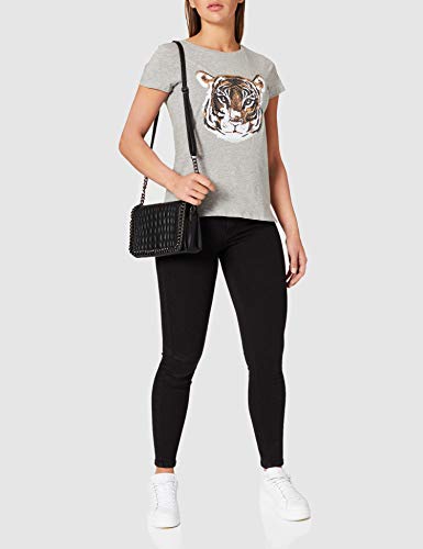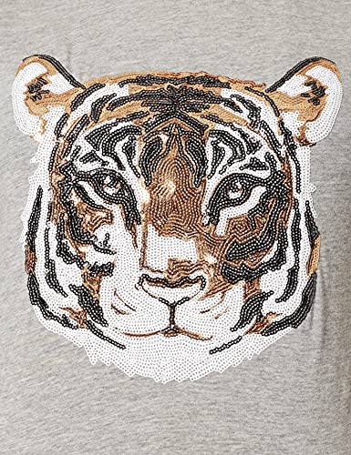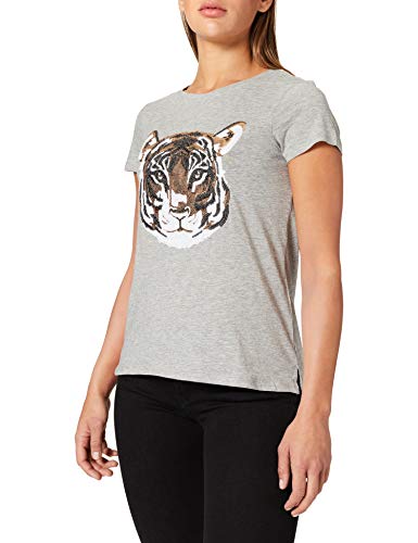 Springfield Camiseta Dibujo Lentejuelas T-Shirt, Grigio, XS Donna
