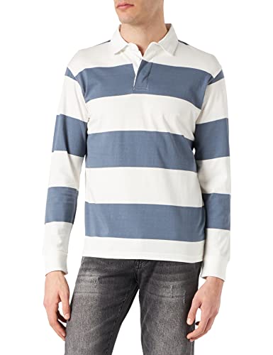 Springfield Camiseta Manga Larga Rugby Raya T-Shirt, Stampa Sfondo Bianco, L Uomo