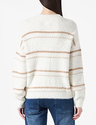Springfield Maglione Lurex Polo a Maniche Lunghe, Beige, XS Donna