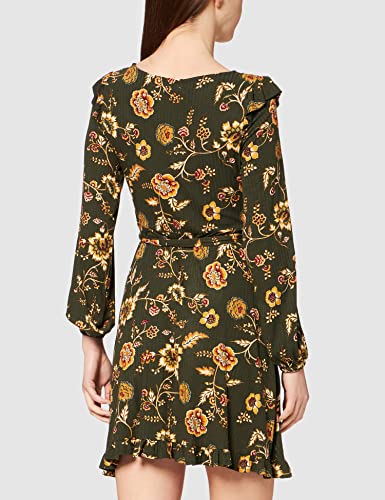 Springfield Vestido Print Kaki Vestito, Verde, XS Donna