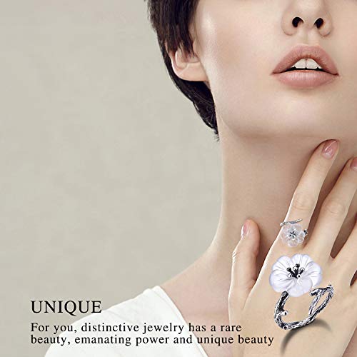 Springlight ✦ Regalo San Valentino Anelli Donna in Argento Sterling S925 Anelli Fiore sotto la Pioggia Cristallo Regolabile Gioielli Regalo Donna.(Antique Silver)