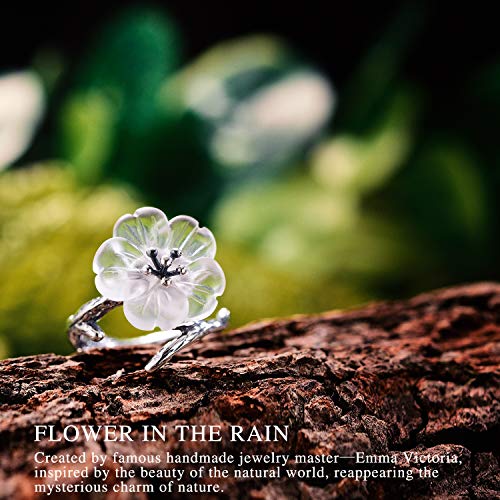 ♥ Design unico ♥ "Anelli Fiore sotto la pioggia Cristallo regolabile", Indossando questo regalo donna anelli donna in argento sterling S925, realizzato a mano e unico nel suo genere, le donne mostreranno un temperamento unico ed elegante.