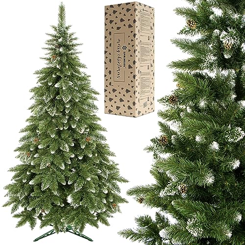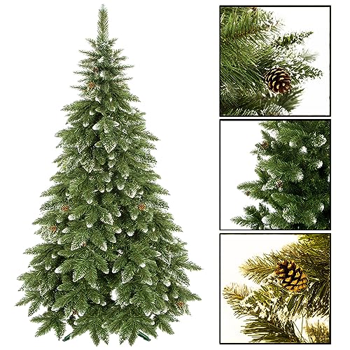SPRINGOS Albero di Natale Artificiale Pino Diamante Neve Artificiale Coni Veri 120 cm