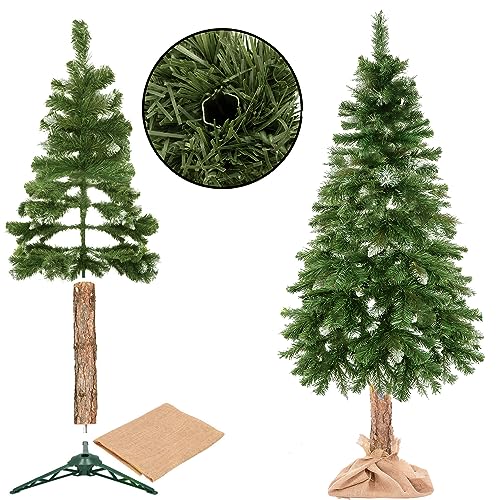 SPRINGOS Albero di Natale 160 cm pino domestico con tronco naturale supporto neve artificiale