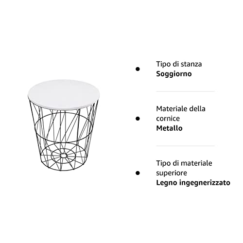 SPRINGOS, cestino con struttura in filo, con coperchio, rotondo, tavolino da caffè, dimensioni: 40 x 35 cm