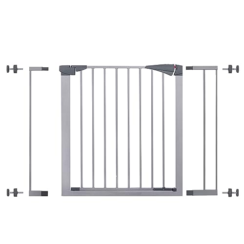 Sicuro: bordi sicuri: gli elementi utilizzati nel cancello hanno forme appositamente arrotondate, in modo che il bambino non abbia la possibilità di pizzicare le dita. La struttura sicura della cerniera impedisce alle dita di schiacciare. Il doppio dispositivo di sicurezza impedisce a un bambino di aprire la porta da solo. I dispositivi di sicurezza si trovano nella parte superiore e inferiore della griglia della porta