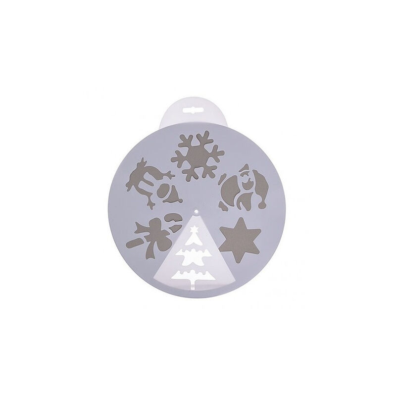 Diametro: 30 cm Materiale: cartone, plastica Uso: per modellare forme con neve artificiale Il modello con i disegni aiuterà a dare la forma adeguata durante la creazione di decorazioni con neve artificiale. I disegni come pinguino, pupazzo di neve, stella, fiocco di neve, albero di Natale e bacchetta corrispondono alla stagione natalizia. Saranno proprio grazie a questi disegni che le decorazioni sulla finestra o sulla vetrina del negozio saranno a tema e molto ben fatte.