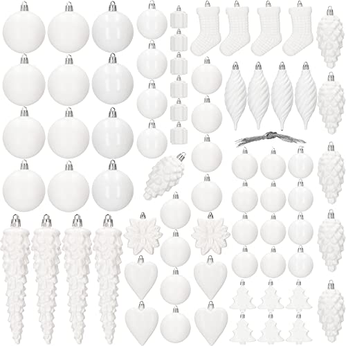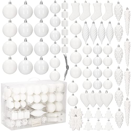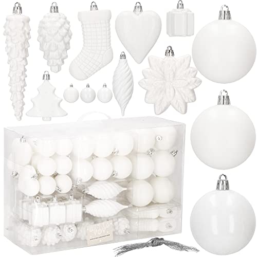 SPRINGOS Set di palline per albero di Natale, 72 pezzi, colore bianco, decorazione per Natale, feste, matrimoni