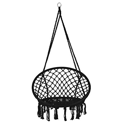Springos Poltrona sospesa con frange, in cotone, dal design macramè, ideale per giardino, ambienti interni ed esterni, con cordini e anelli