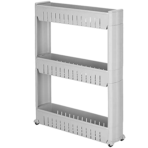 SPRINGOS, scaffale mobile a 3 ripiani, per stanza da bagno, WC, multiuso, colore grigio, dimensioni 70 x 54 x 12,5 cm
