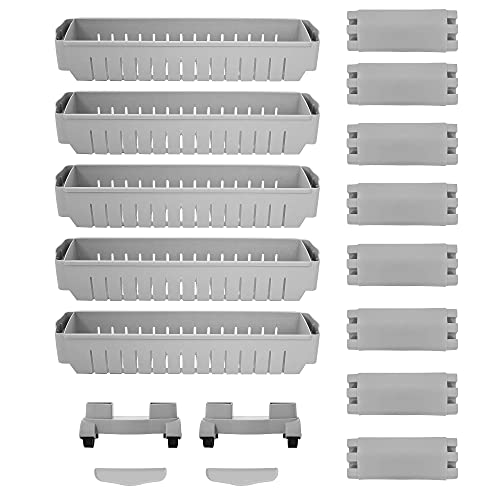 Parametri: realizzato in plastica (polipropilene), altezza x larghezza x profondità: 131,5 x 54 x 12,5 cm, colore grigio, uno scaffale con quattro piccole rotelle.