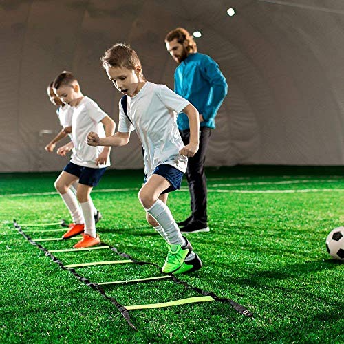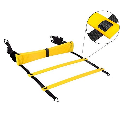 ✅ Durevole: scala per la coordinazione del calcio da 8 metri con 16 pioli regolabili in plastica ad alte prestazioni e borsa per il trasporto. La scaletta può essere facilmente riposta nella borsa, in modo da poter allenarsi ovunque e in qualsiasi momento