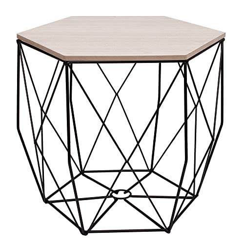 Piano del tavolo: questo tavolino di filo metallico è dotato di un piano rimovibile esagonale che può essere utilizzato o meno a seconda della destinazione del tavolino. Questo tavolino può essere utilizzato sia come accessorio decorativo che come oggetto funzionale.