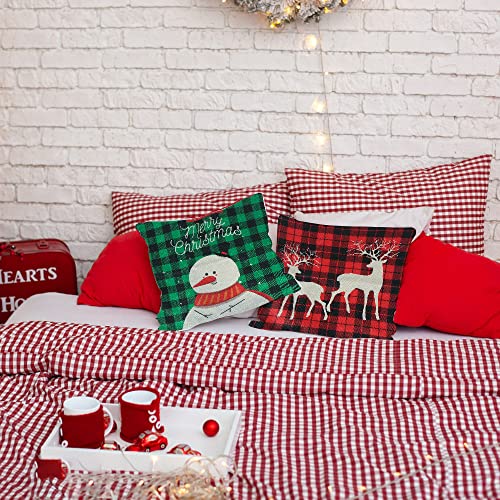 Sprinlot Addobbi Natalizi Cuscini Federa,4 Pack Copricuscini Natalizi 45 x 45cm,Divano Natalizie Decorativi Cuscino Lino,Decorazione Camera Letto,Cose di Natale Federe Cuscini per La Casa Decorative