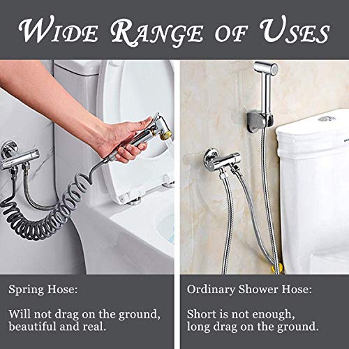 Controllo della pressione dell'acqua: lo spruzzatore per bidet manuale fornisce un ottimo controllo della pressione dell'acqua, è comodo e senza frustrazioni senza problemi di spruzzatore, un delicato bidet spray da utilizzare come bidet portatile e un getto spray per le operazioni di pulizia.