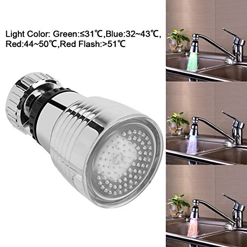 [Risparmio energetico e sicurezza] Questo spruzzatore per rubinetto con luce LED ha un aspetto fantastico e unico. Il colore della luce cambierà insieme alla temperatura dell'acqua ed è alimentato da acqua corrente, non è necessaria alcuna batteria aggiuntiva.