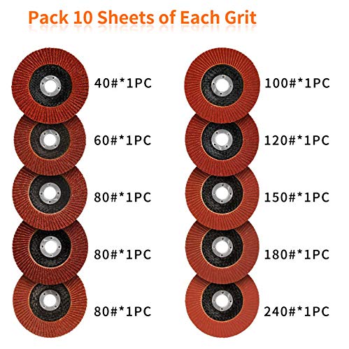 SPTA - Dischi abrasivi in ossido di alluminio, 10 pezzi, con grana 40, 60, 80, 100, 120, 150, 180, 240