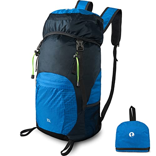 SPTYODR Zaino da trekking da 35 l, da uomo e da donna, con copertura antipioggia, zaino da viaggio impermeabile, pieghevole, per escursioni, alpinismo, viaggi e altre attività all'aperto, blu, Blu