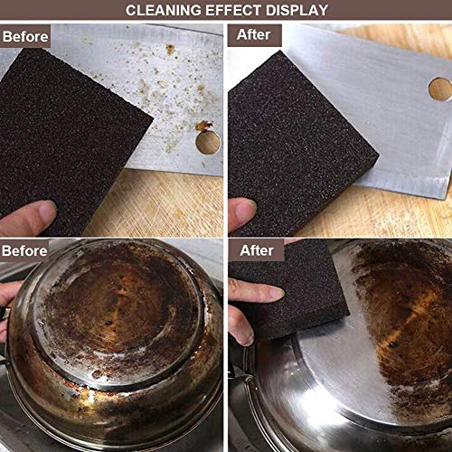 ha all'interno una spugna resistente ad alta densità, solida e non facile da rompere, anche resistente ad acqua, usura, acidi e alcali. Ogni pezzo di spugna abrasiva misura 100 x 70 x 25 mm. Nota: spugna di diverso grado pesano in modo diverso.