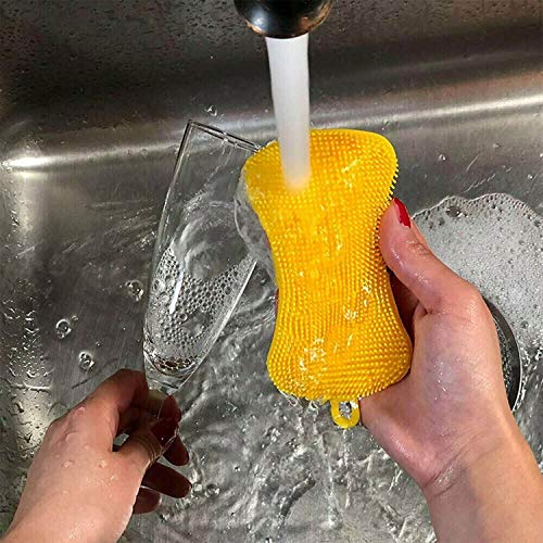 Spugna antibatterica in silicone, Spugna antiaderente multifunzione a 4 colori per utensili da cucina, bottiglie, frutta e corpo