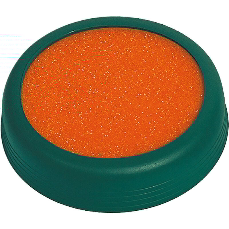Involucro circolare realizzato in gomma antiscivolo. Una volta imbevuta, è indicata per inumidire le dita quando bisogna contare o sfogliare parecchi fogli di carta e per realizzare affrancature. In scatolina appendibile.
