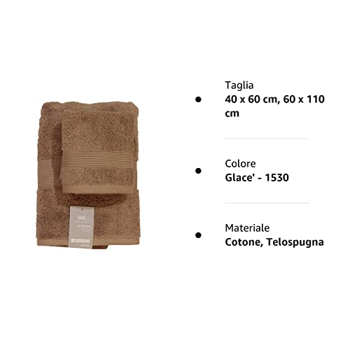 SET SPUGNA COPPIA 2 PEZZI 1+1 OSPITE 40 x 60 + ASCIUGAMANO 60 x 110 ZUCCHI SOLOTUO ASCIUGAMANI 100% SPUGNA DI PURO COTONE 560 GR/MQ (GLACE' - 1530)