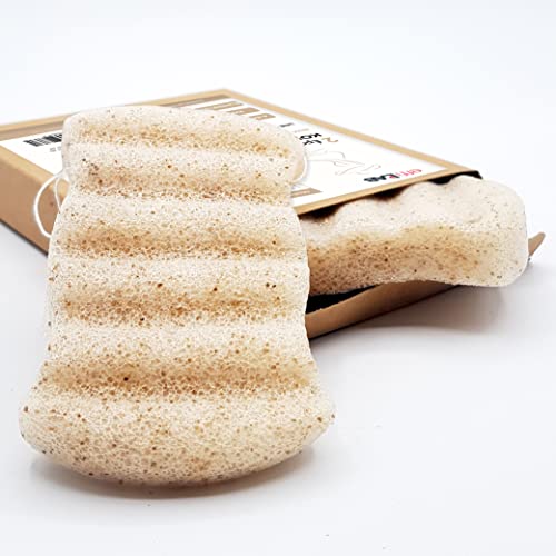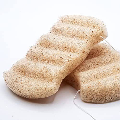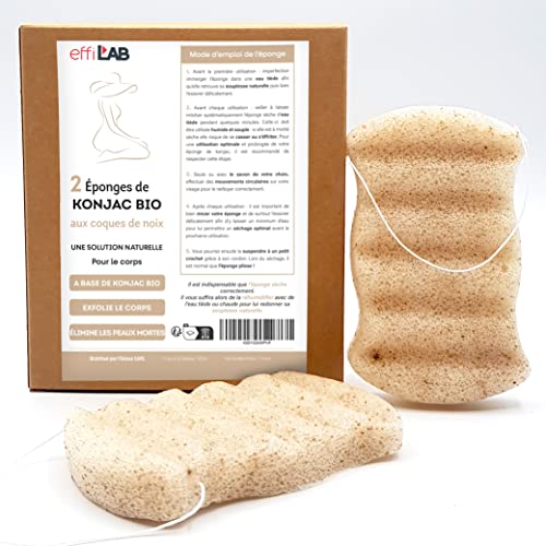 Spugna esfoliante Konjac bio con gusci di noce spezzati per il corpo | Set di 2 spugne corpo | Spugna vegetale detergente naturale