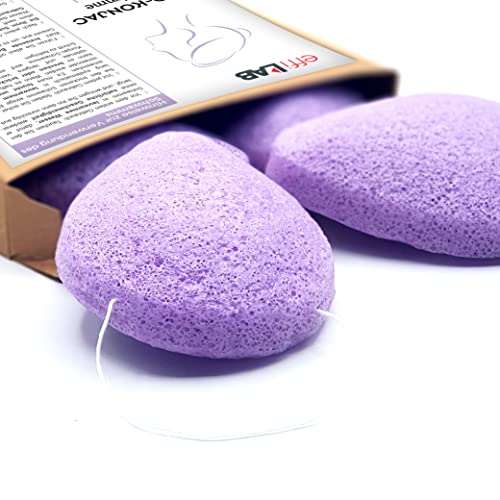 Spugna Konjac bio per il viso associata alla lavanda | Set di 4 spugne a forma di gocce | Spugna vegetale detergente naturale