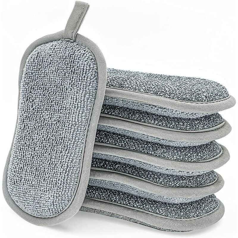 Spugna lavabile: pulizia senza sforzo: hai lottato con la pulizia del cibo sporco o bruciato sulle pentole? Con il nostro tessuto combinato spugna/microfibra progettato dal nostro marchio. La microfibra 2 volte più forte rimuove lo sporco, il grasso e il 99% dei batteri. Sono realizzati in poliestere, poliammide e poliuretano della migliore qualità, lato anteriore: lavasciuga durevole, retro: microfibra di alta qualità, assicurando che non si consumino in una settimana come fanno i tamponi.Pulisci acquistato in negozio.Lato in spugna lavabile multiuso Scrubber Durevole Scrubber è ottimo per la pulizia e il lato in microfibra di alta qualità è ideale per un lavaggio delicato, una pulizia efficace con solo acqua per servizi igienici, lavandini, stoviglie, pentole. Senza sostanze chimiche e di lunga durata: la spugna dura per la pulizia della cucina contiene nessun prodotto chimico nocivo. Per la salute e la sicurezza dei nostri clienti, garantiamo che le nostre spugne siano sicure al