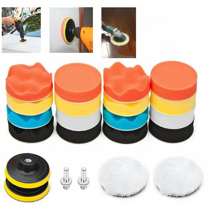 Tampone per lucidatura in spugna - Tamponi per lucidatura da 3 pollici, il pacchetto include tamponi in spugna, tampone in lana e adattatore per trapano filettato per soddisfare molte esigenze di lucidatura Kit di lucidatura completo e professionale - Ci sono 5 tipi di Esecuzione morbida e fine - Assorbimento d'acqua super antigraffio come tamponi per lucidatura auto in spugna ad alta densità e tampone in lana, morbidi e delicati, porosità fine con super elastico, assicurano un migliore assorbimento sulla superficie dell'oggetto lucidante, perfetto per una rapida riparazione dei graffi Adattatore per trapano premium - Dotato di un adattatore per trapano standard per collegare la lucidatrice, adatto per punte da trapano M10 e utilizzato per lucidatrice ad aria o elettrica, design in velcro sul retro del tampone in spugna, usalo più facilmente, puoi cambiare il pad in pochi secondi Ampia applicazione - Utilizzato per tutti i tipi di dipinti del mio acqua di ceratura, lucidatura dei