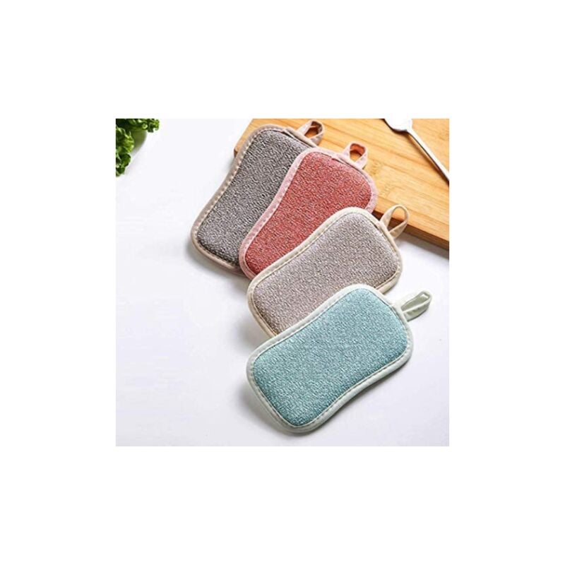 Una buona spugna: lo strato intermedio del tappetino per lavastoviglie è una spugna morbida e spessa. Ha una grande elasticità e si riprende rapidamente. Crea una schiuma ricca quando si utilizza il detersivo per piatti per rimuovere facilmente olio e macchie.Riutilizzabile: facile da pulire con acqua o detersivo, senza odori o macchie. Igienico e riutilizzabile.Due lati: microfibra su un lato per la pulizia e la pulizia e uno scrub non abrasivo sull'altro lato per rimuovere i residui di cibo appiccicoso e lo sporco ostinato, perfetto per pentole antiaderenti antigraffio.Facile da pulire: questo la spugna per lavastoviglie ha un cinturino sulla parte superiore per una facile asciugatura e conservazione. Lavare dopo l'uso, strizzare leggermente e appendere. Si asciuga rapidamente all'aria. Ti aiuta a mantenere la tua cucina pulita e ordinata. Igieniche e riutilizzabili. Contenuto della confezione: 4 spugne abrasive a doppia azione nei colori rosso, grigio scuro, blu, beige. Misurando