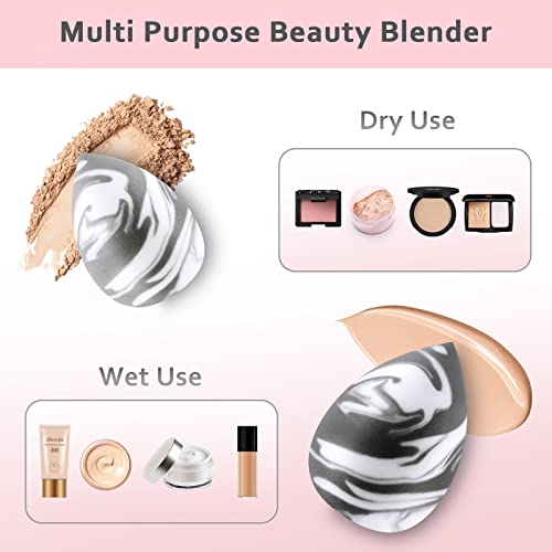2 pz Set di Spugnette Trucco Beauty, Mini Spugnette Beauty Blender per Liquidi Creme e Polveri, Regalo per le Donne (Serie marmo)