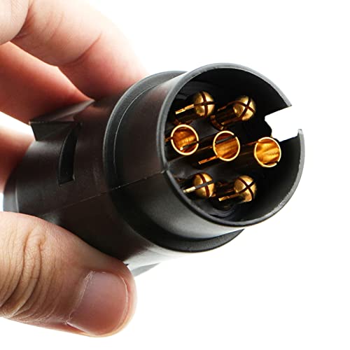 Caratteristica: la spina del rimorchio a 7 pin stabilisce un collegamento sicuro tra rimorchio e semirimorchio o altro veicolo. Ha perni rotondi in ottone per garantire una caduta di tensione minima e maniglie per un facile inserimento e rimozione.