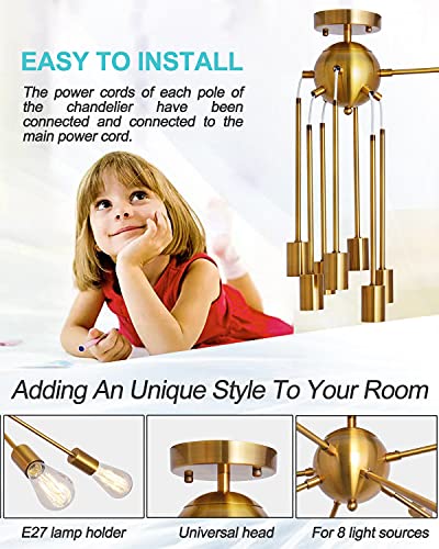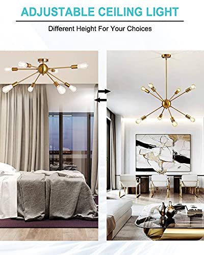 Sputnik Lampadario, E27 8-luci Lampada a Sospensione Moderno, 25-100 cm Regolabile Lampadario Soggiorno per Piano Inclinato, Sala Da Pranzo, Camera Da Letto e Corridoio,D'oro,8