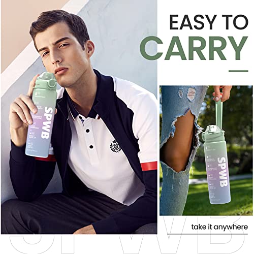 SPWB Borraccia 1 Litro, Borraccia Sportiva con Indicatore del Tempo, Bottiglia Acqua Motivazionale senza BPA, Resistente alle perdite, per Fitness, Campeggio, Attività all'aperto, Ufficio, Scuola