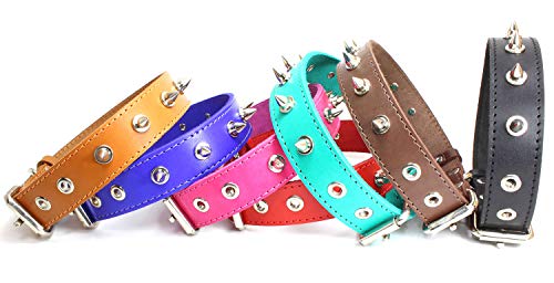 Meraviglioso collare per cani con Spykes, realizzato in Europa in pelle bovina colorata italiana di alta qualità.