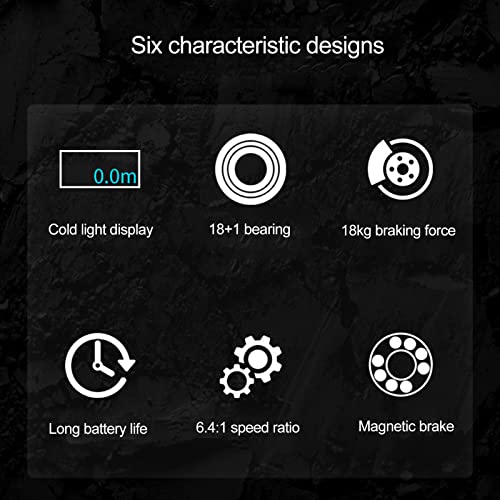 SPYMINNPOO Display Digitale LCD Mulinello Baitcasting 18 + 1BB 6.4:1 Trascinamento Massimo 18KG Mulinello da Pesca Elettrico Conteggio Sinistra/Destra(Mano Destra)