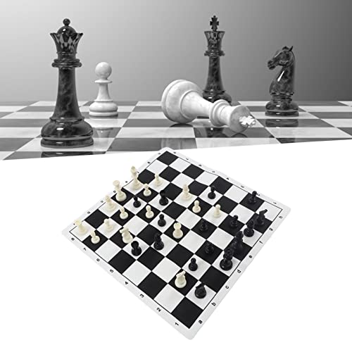 SPYMINNPOO Set di Pezzi degli Scacchi, Plastica PS 32 Pezzi degli Scacchi con Scacchiera in PU e Custodia per Gioco di Scacchi Internazionale in Bianco e Nero
