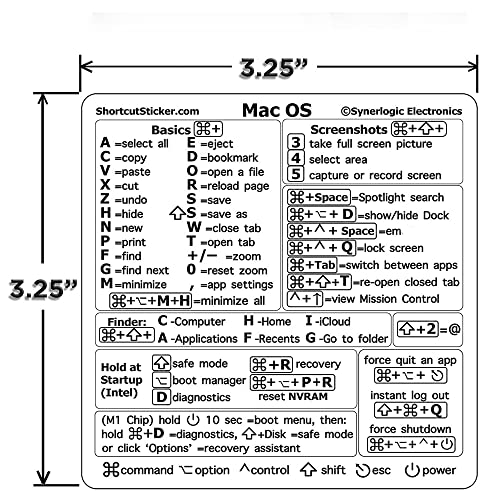 SQALCXY Adesivi di scorciatoie da tastiera di riferimento rapido per PC Adesivo di scorciatoie da tastiera di riferimento per PC Laptop Desktop (per Mac)