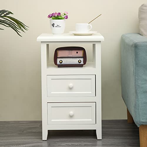 SQPFTW Comodino già assemblato, comodino con 2 cassetti, completamente assemblato, per camera da letto, soggiorno e bagno, colore beige