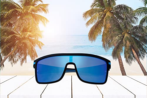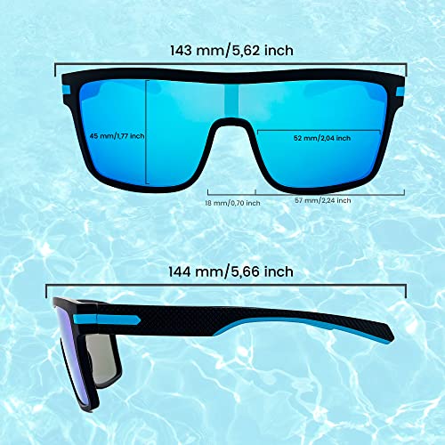 SQUAD Occhiali da sole Uomo, Rettangolari Telaio Nero Compagno Lente Grande Blu Rispecchiato Per la guida