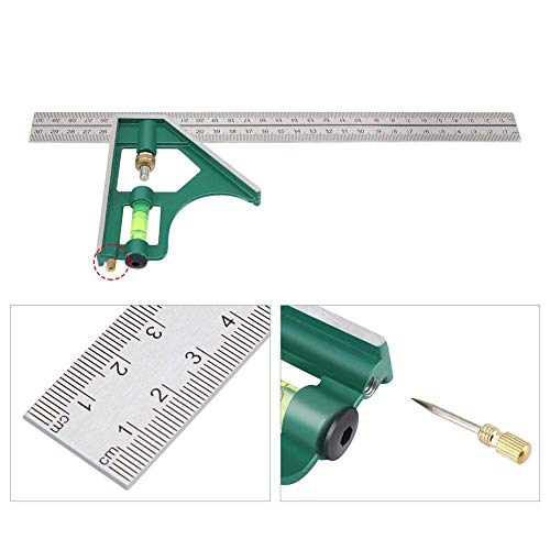 Set Squadra Combinata, righello angolare quadrato multifunzione da 300 mm, 45/90 gradi con livella a bolla, 0-300 mm Campo di misura, 1 mm Valore di indicizzazione
