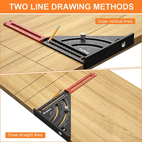 Squadra da Falegname, Preciva 6 pollici Carpentiere Squadra Combinata Pieghevole, Guida e Goniometro Multi-Angle Misura in Alluminio Multifunzionale Strumenti Lavoro per Fai da Te
