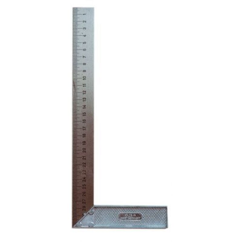 Asta in acciaio e zoccolo in alluminio tagliato a 45. Doppia graduazione in millimetri. Lunghezza 400 mm