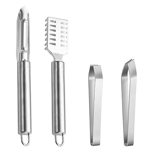 Squamatore per Pesci in Acciaio Inossidabile,Strumento per Disincrostare i Pesci,Dispositivo di Rimozione della Squama di Pesce Multifunzionale,Pinze a Lisca di Pesce 4 Pezzi Tokaneit