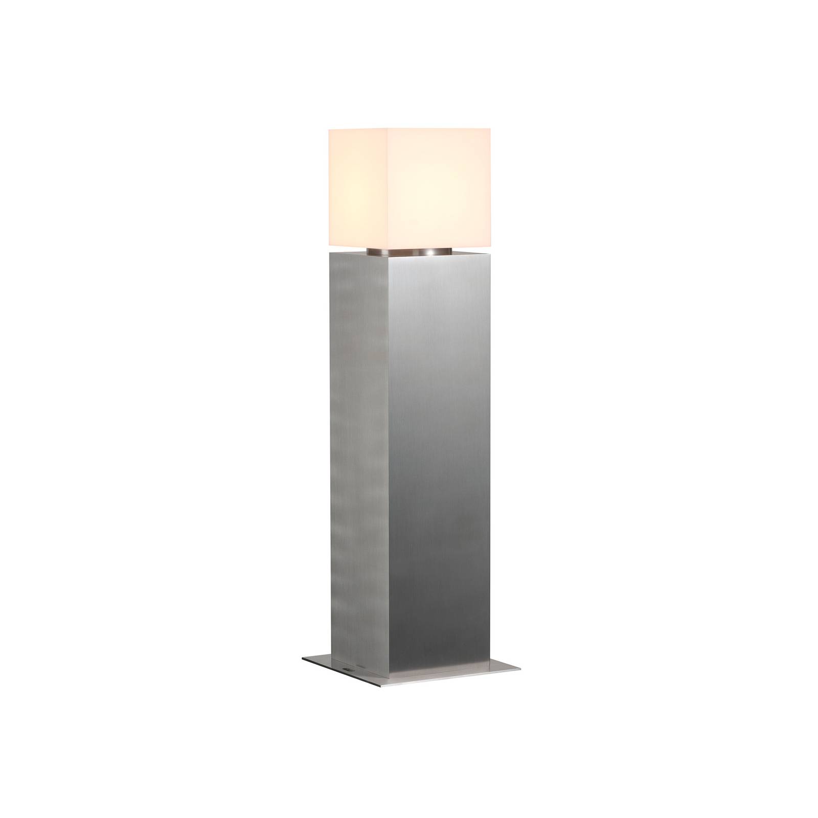 Lampioncino quadrato in acciaio inossidabile 304 Il lampioncino quadrato è realizzato in acciaio inossidabile 304 e in un cubo di acrilico opalino che contiene la sorgente luminosa. Il grado di protezione IP44 la rende adatta all'uso esterno. Con estremità del cavo aperta: È necessaria una scatola di connessione. Come accessori sono disponibili un set di ancoraggio per calcestruzzo e un picchetto per il terreno.