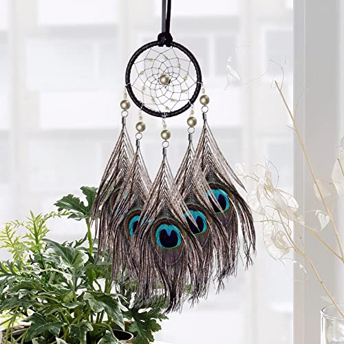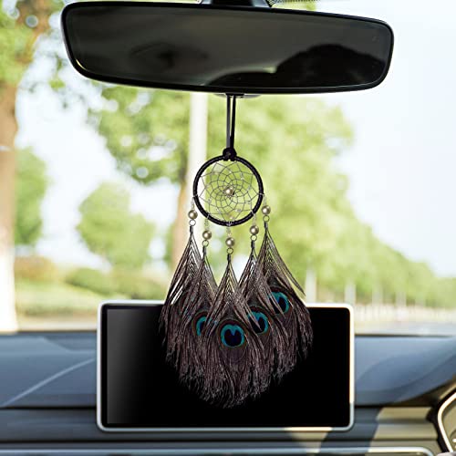 Squisito acchiappasogni fatto a mano con piuma di pavone, ciondolo per specchietto retrovisore per auto, ornamenti da appendere fatti a mano per la decorazione della parete della camera da letto