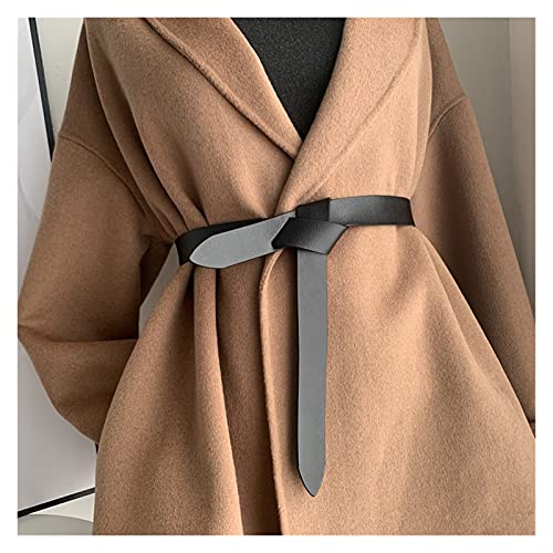 Srfghjs Cintura da Donna Moda Donna in Pelle PU Cintura Nera Cintura Decorativa Rivestimento Cappotto for la Pelle Donna Semplice Cintura annodata retrò Esterna (Belt Length: 118cm, Color: Black)